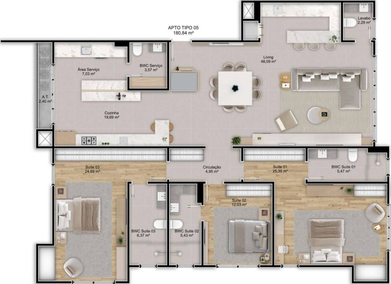 O AnnaBella Residence com uma localização privilegiada no Bairro Coral, este apartamento contempla três dormitórios (sendo três suítes), amplo living, sacada, vaga de garagem e a área privativa de 180m².