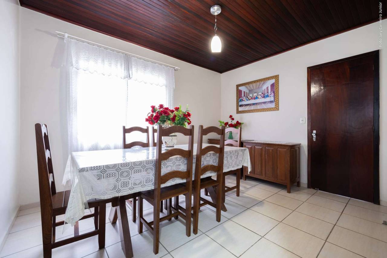 03 dormitórios Sala de estar e jantar Cozinha ampla com despensa Área de serviço 02 Banheiros Garagem para 02 carros Espaço coberto com churrasqueira a carvão