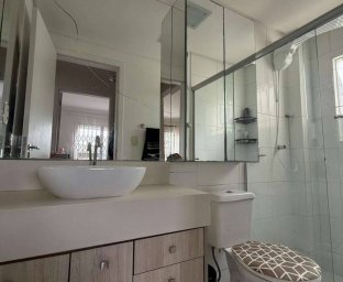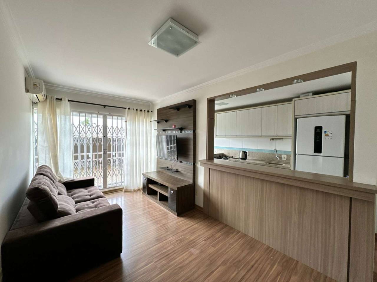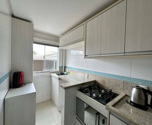 * 58 m² de área privativa * 74 m² de área total * Semi-mobiliado * 2 dormitórios (sendo 1 com móveis planejados) * Cozinha planejada * Área de serviço * Sala integrada em conceito aberto com mesa, painel de TV e ar-condicionado * Banheiro social * Vaga de garagem coberta para 2 veículos