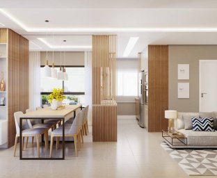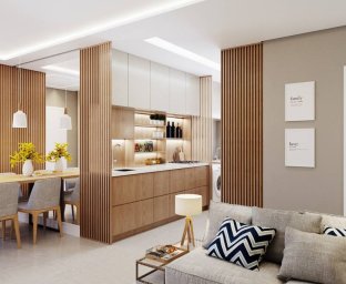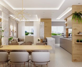 * Sala de estar e cozinha integradas, criando um ambiente acolhedor e funcional