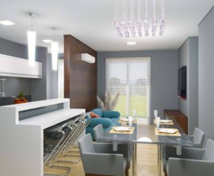 Apartamentos com 2 dormitórios sendo 1 suíte, banheiro social, sala de estar e jantar integradas, sacada com churrasqueira, cozinha, área de serviço e garagem. Opções com Vaga Dupla.
