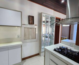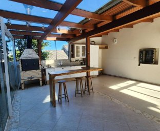 Casa linda Parte superior1 suíte Master, 2 Suítes, 1 quarto, Sala de estar com lareira Parte Inferior: Sala Estar/Jantar, escritório, cozinha com embutidos, fogão lenha, salata de tv, lavabo. SALAO DE FESTAS. Garagem grande, vários carros.