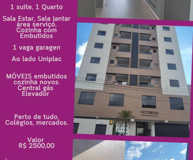 Apartamento novo. 1 suite 1 quarto. Sala Estar, sala Jantar. Cozinha com Embutidos novos, bwc social, área serviço com instalação gás novo sacada com churrasqueira. 1 garagem, elevador. Ótimo de Sol.