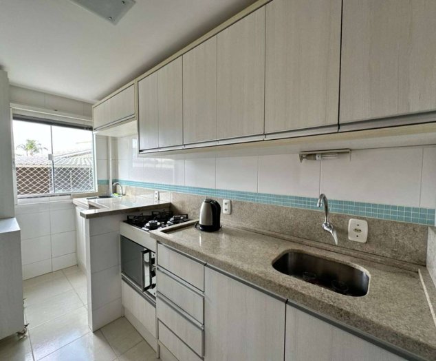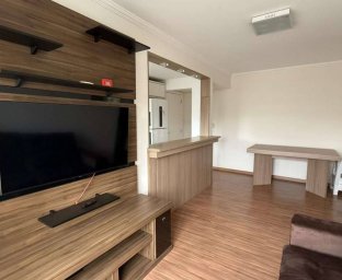 * 58 m² de área privativa * 74 m² de área total * Semi-mobiliado * 2 dormitórios (sendo 1 com móveis planejados) * Cozinha planejada * Área de serviço * Sala integrada em conceito aberto com mesa, painel de TV e ar-condicionado * Banheiro social * Vaga de garagem coberta para 2 veículos