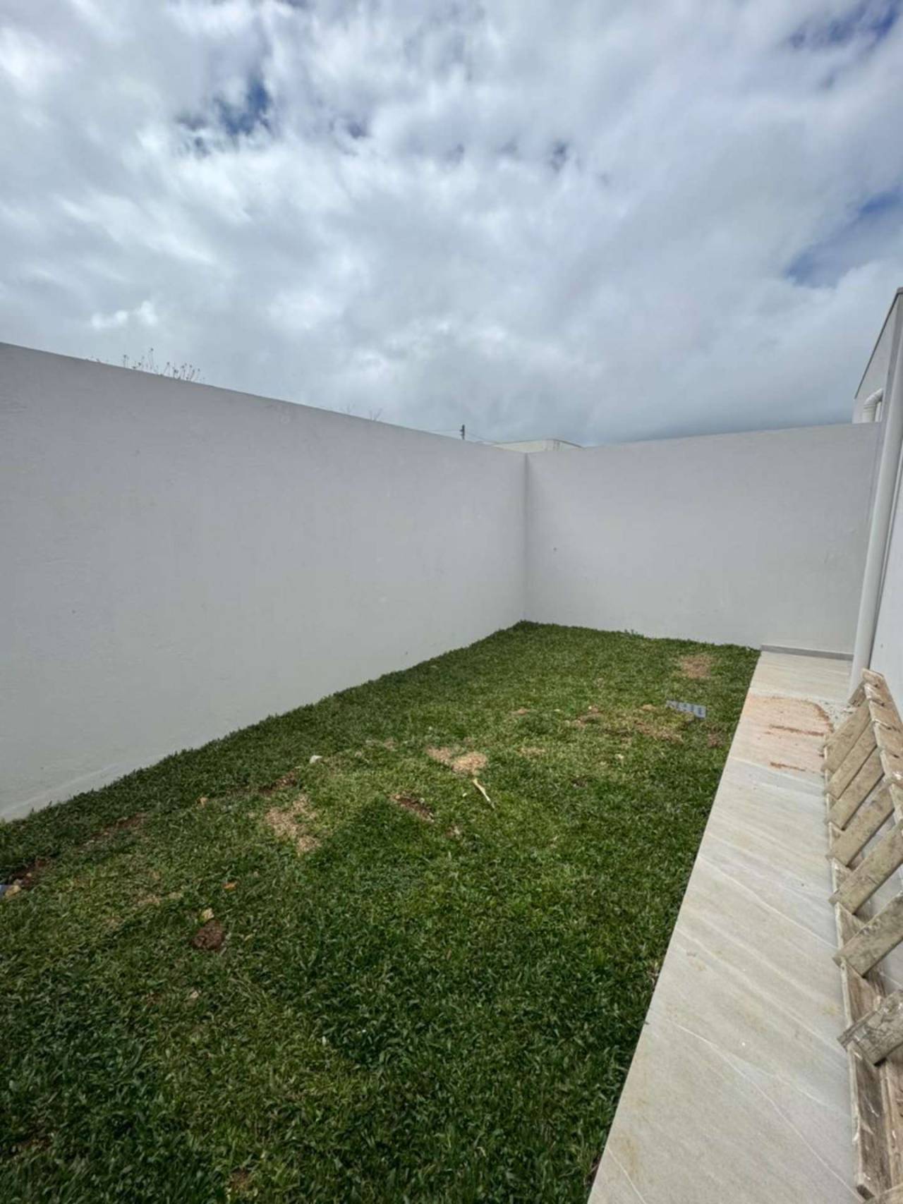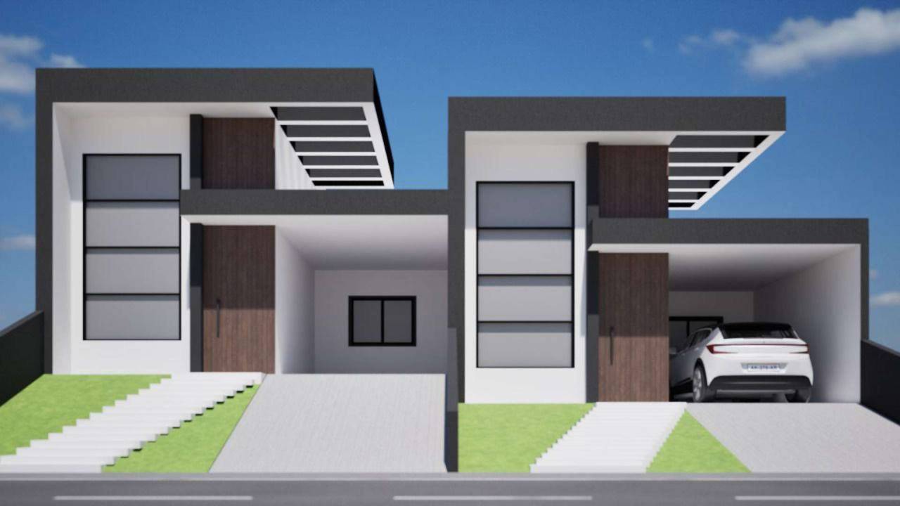 02 dormitórios sendo 01 suíte Banheiro social Área de serviço Cozinha Sala de estar e jantar com pé direito elevado Garagem Espaço gramado nos fundos do terreno