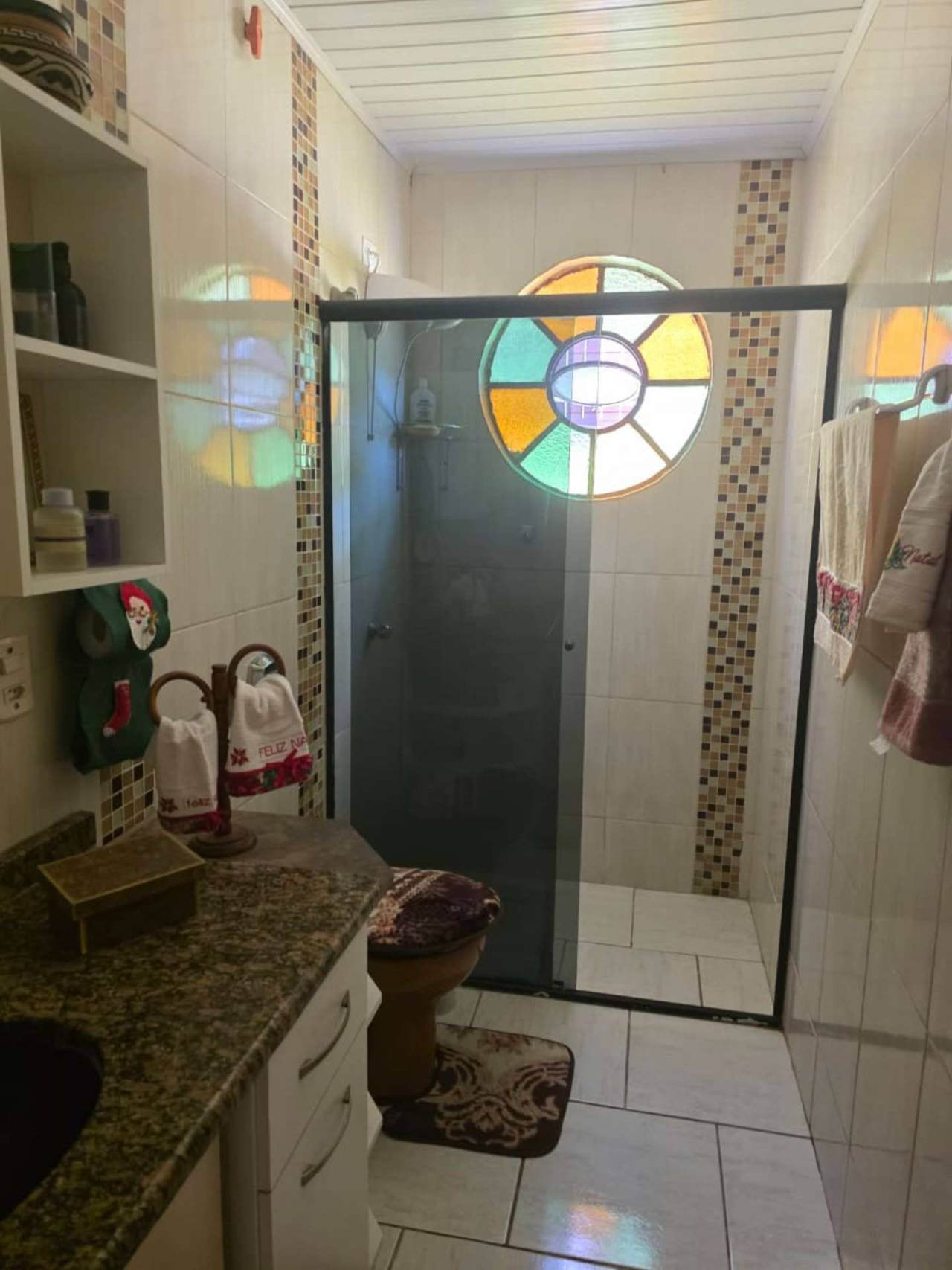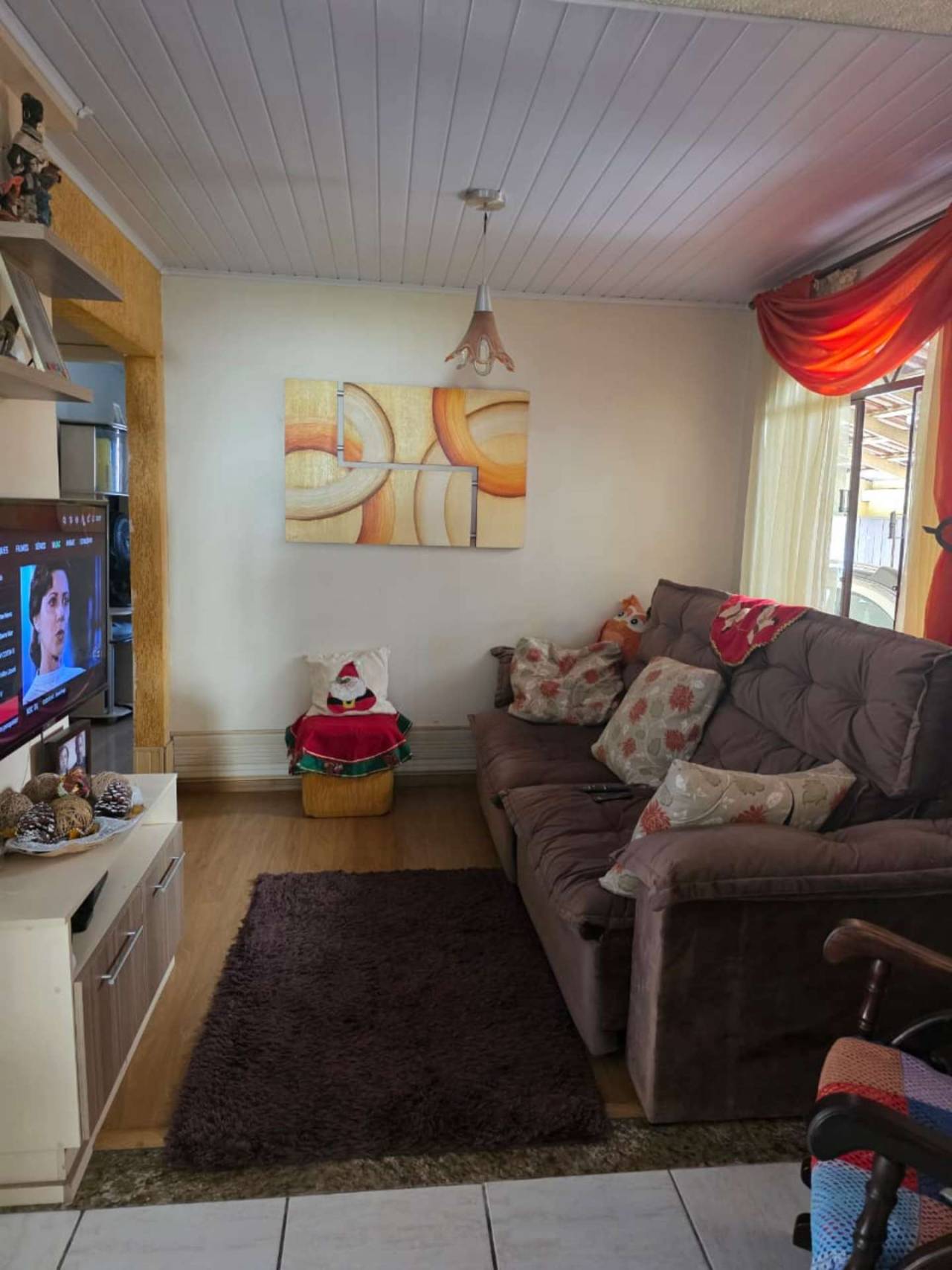 3 dormitórios, sendo um suíte, banheiro social, cozinha, sala em L com lareira, dispensa e área de serviço.