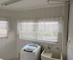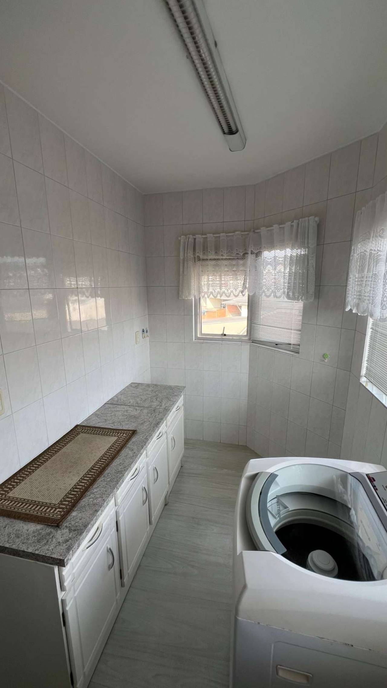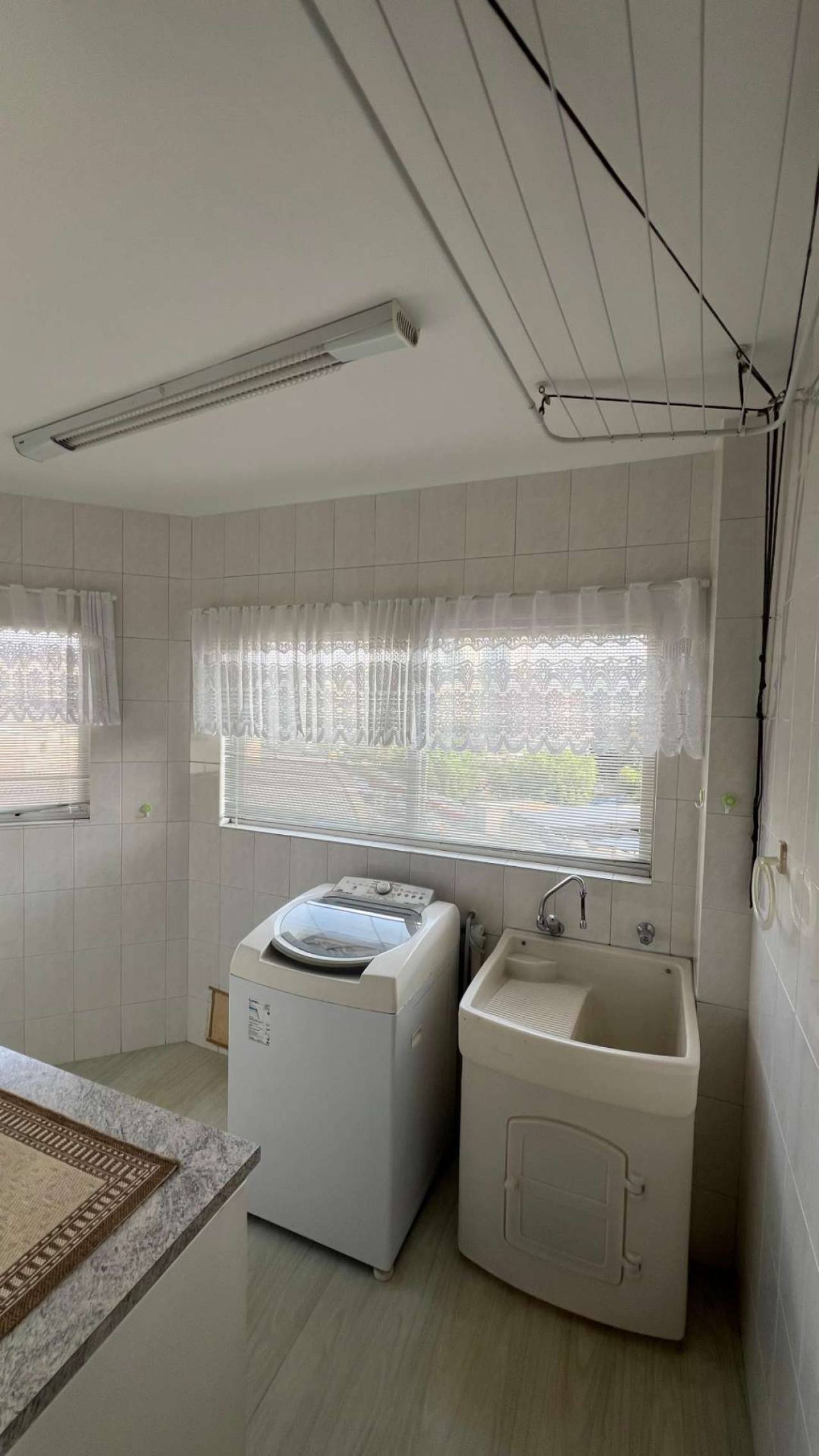 Área de serviço com tanque e máquina de lavar
