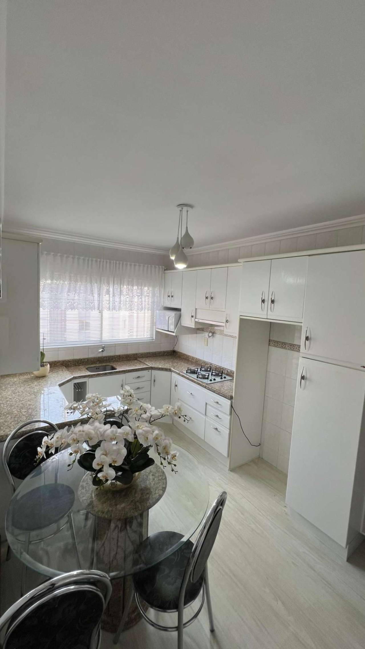 Cozinha mobiliada com cooktop e micro-ondas