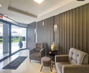 2 dormitórios, sendo 1 suíte, sala, cozinha, banheiro social, churrasqueira, sacada, gesso, porcelanato, laminado nos quartos, gás central, água quente, pontos para split, 2 vagas de garagem.