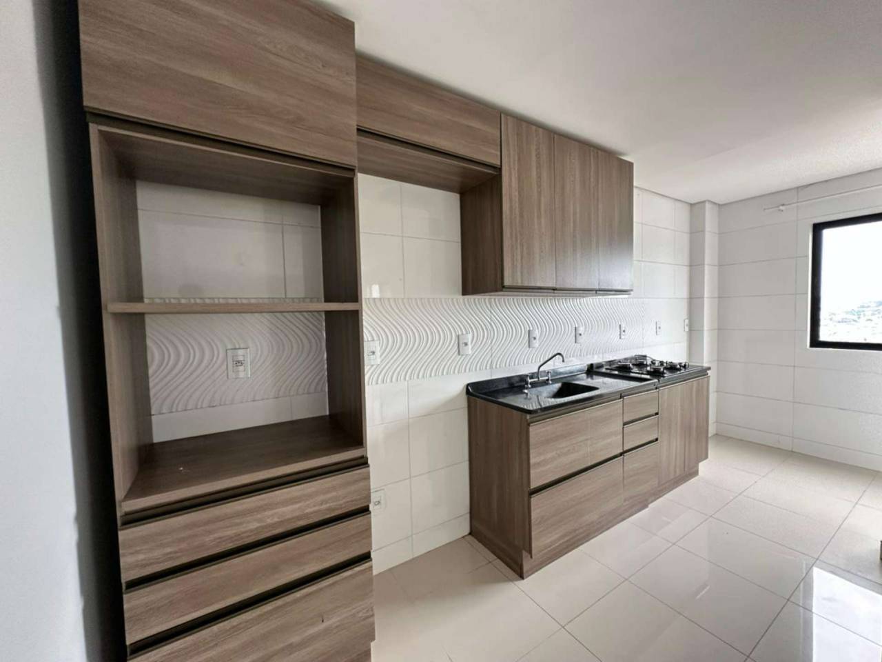 Cozinha e área de serviço com móveis planejados