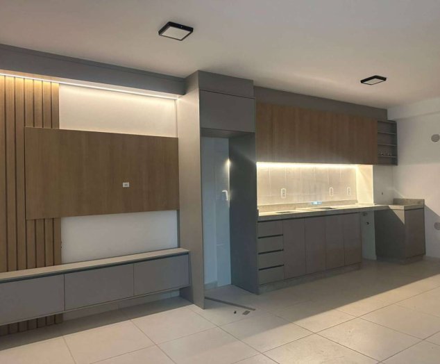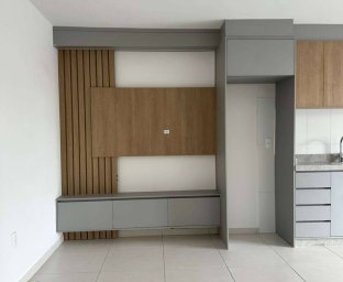 apartamento 2 quartos, sala cozinha com móveis emburidos novos, sacada com churrasqueira.