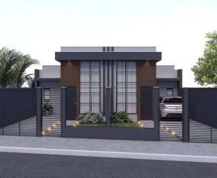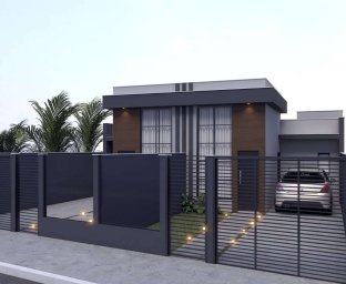 Piso porcelanato, banheiro com nichos, pintura interna com calfino, portões basculante com motor e acesso pedestre separado.