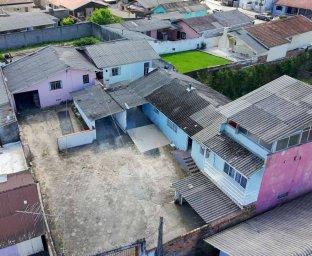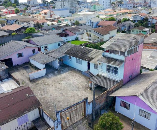 Terreno contendo três construções já existentes, oferecendo múltiplas possibilidades de uso.