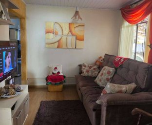 3 dormitórios, sendo um suíte, banheiro social, cozinha, sala em L com lareira, dispensa e área de serviço.