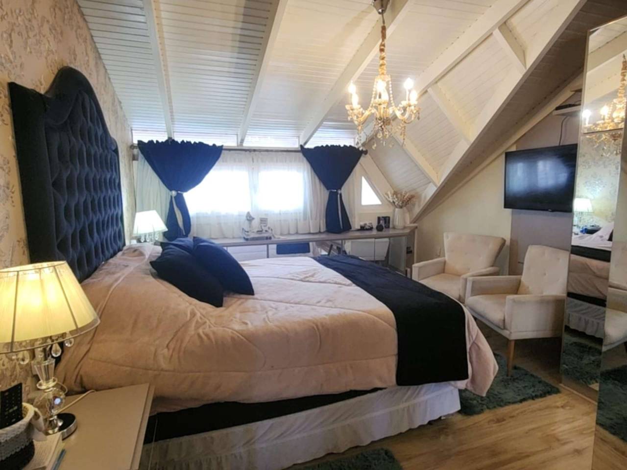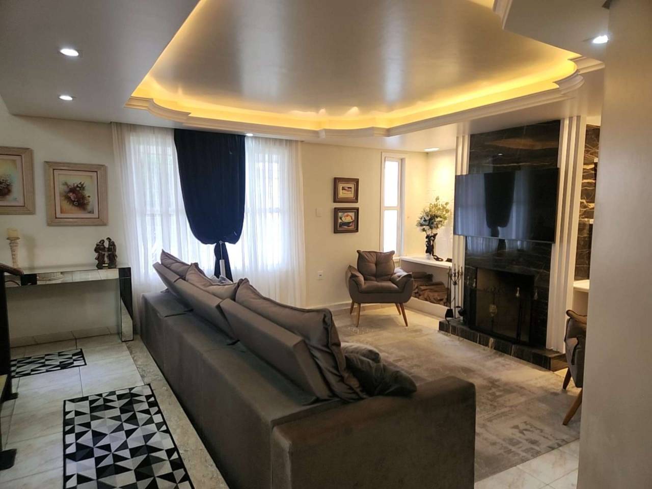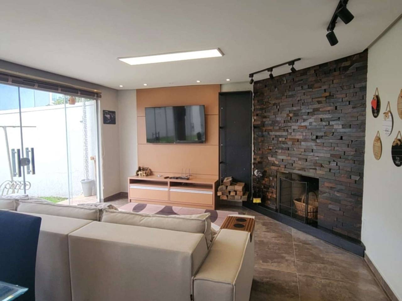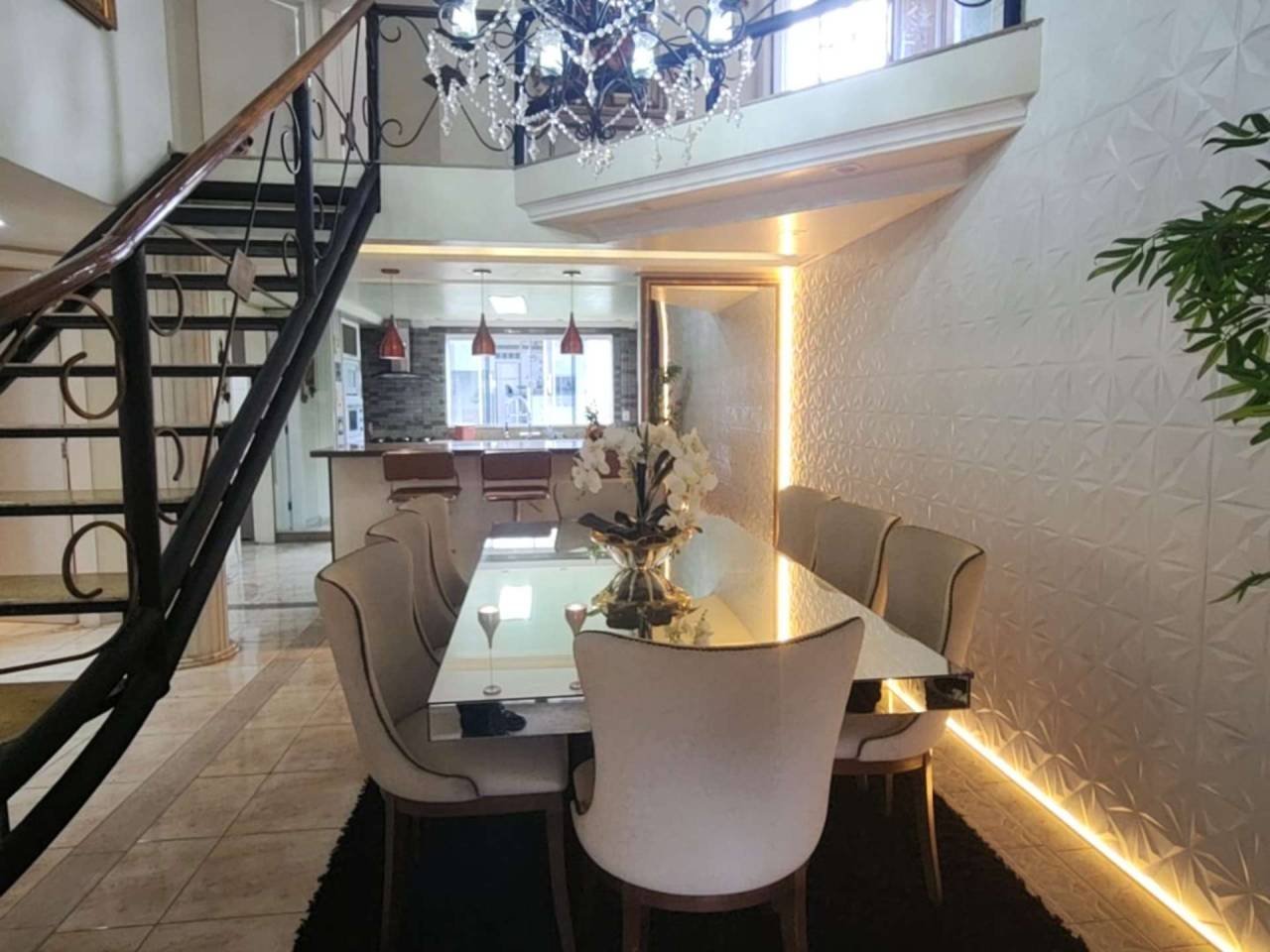 Edícula fundos com cozinha gourmet, toda equipada com churrasqueira, sala TV c/ lareira, jantar, lavabo, escritório. Acabamento com forro de gesso, piso porcelanato, vidros blindex.