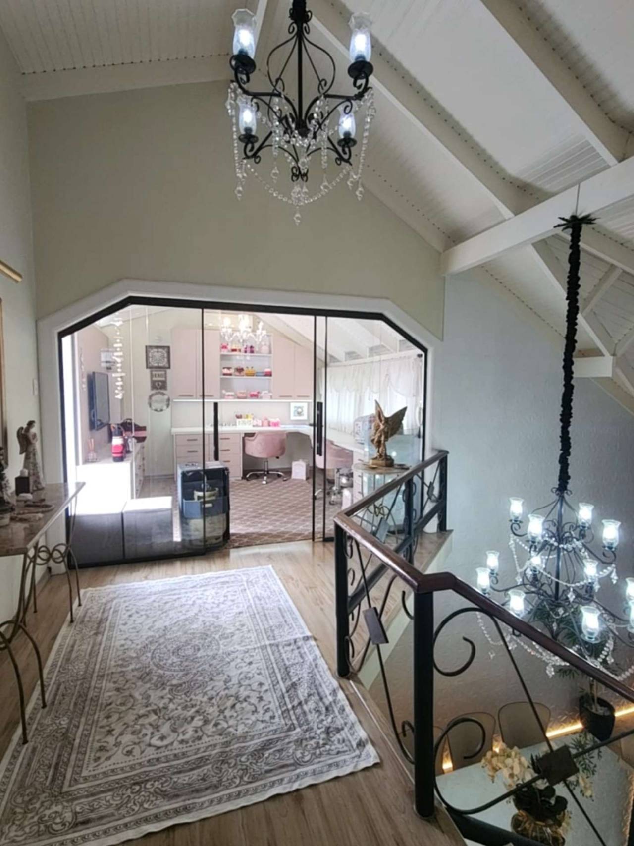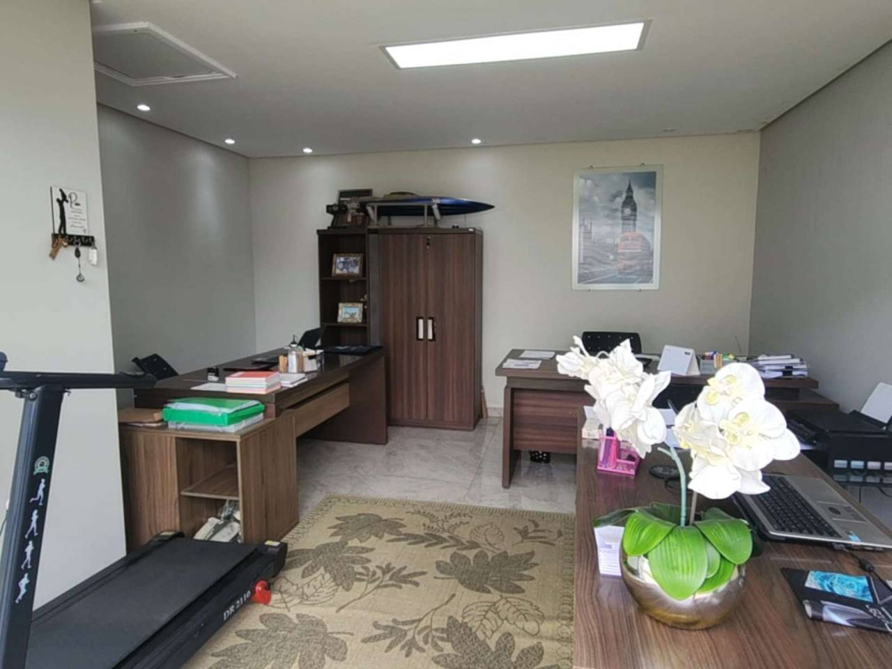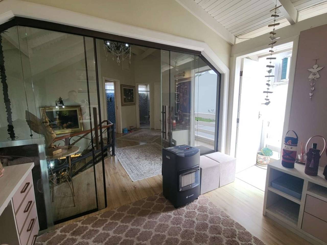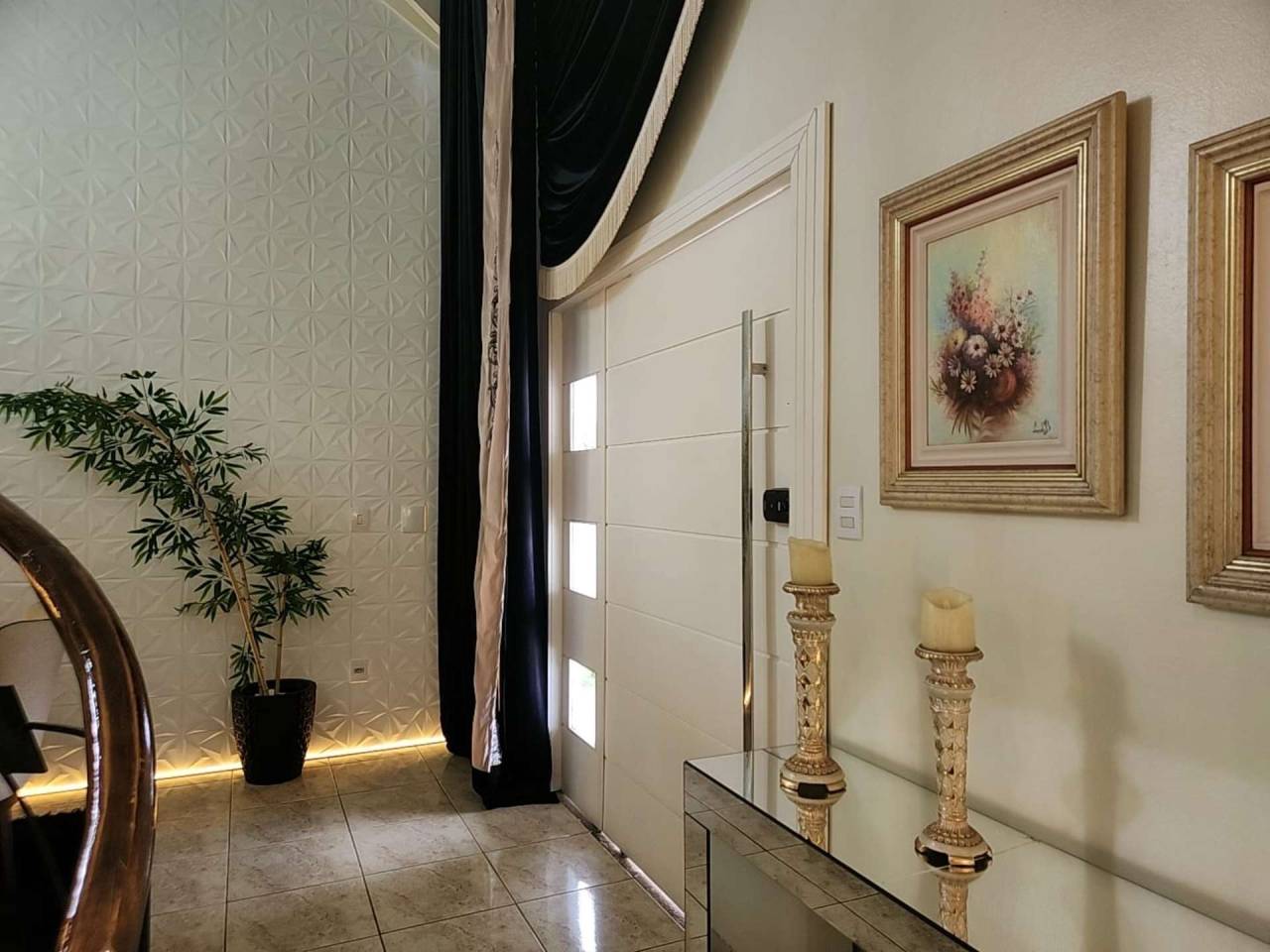 Edícula fundos com cozinha gourmet, toda equipada com churrasqueira, sala TV c/ lareira, jantar, lavabo, escritório. Acabamento com forro de gesso, piso porcelanato, vidros blindex.