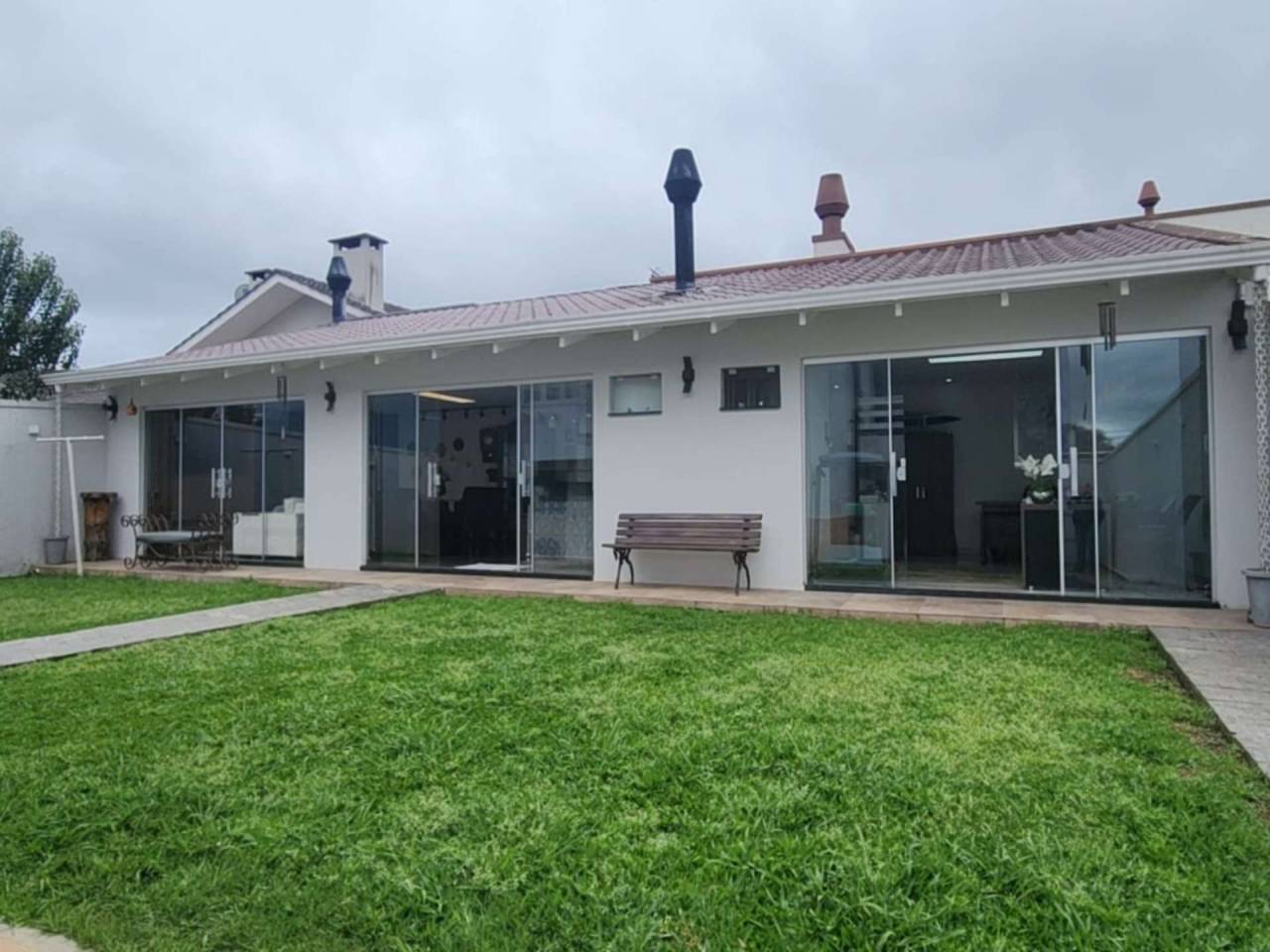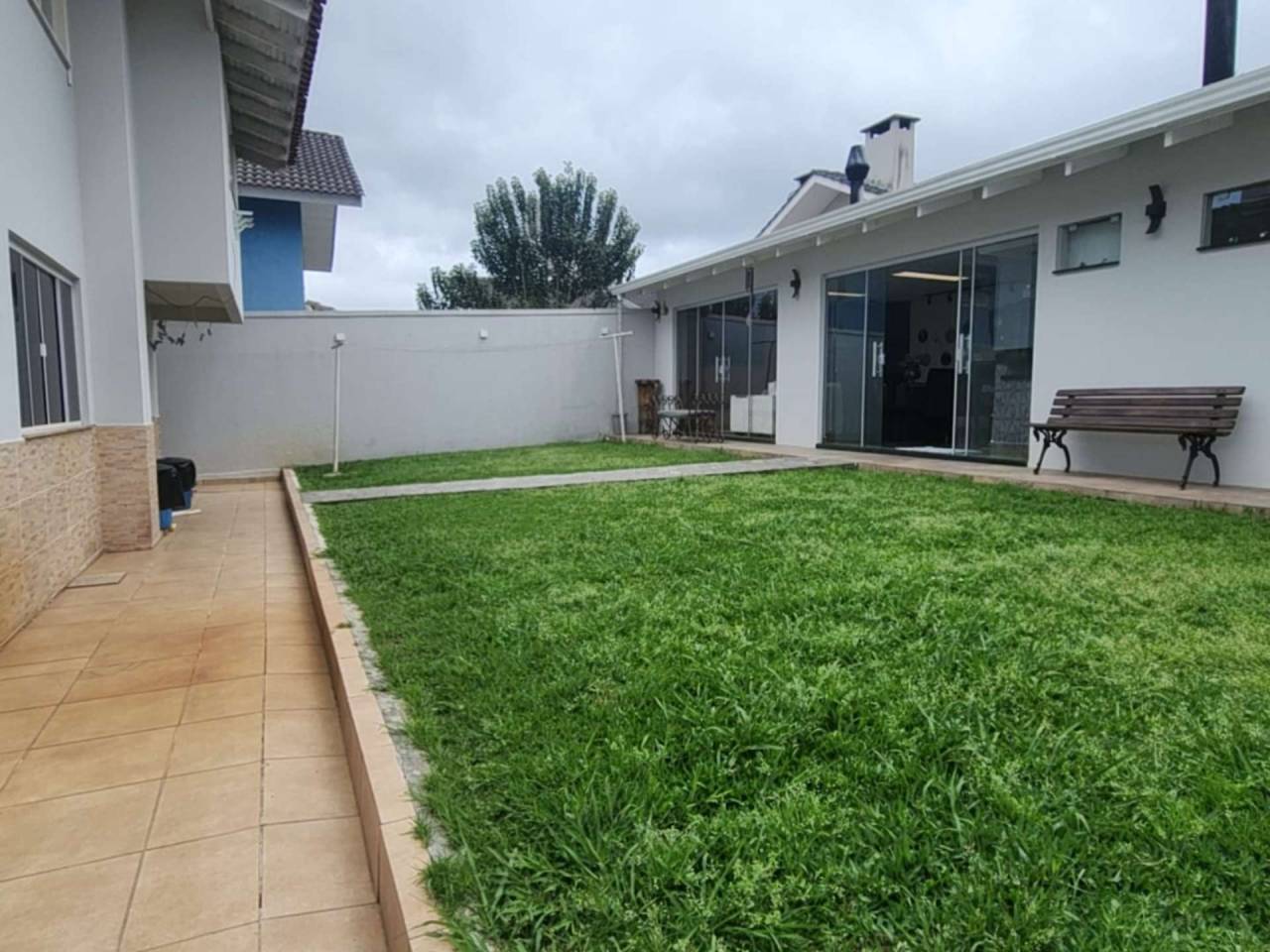 Pátio gramado nos fundos, toda murada, grandes frontais, interfone, portão automático e outros.
