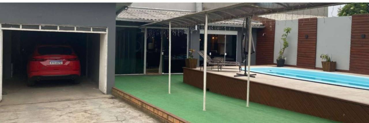 Vende-se casa com espaço comercial e piscina 1º piso Sala social com lareira , sala de jantar e cozinha integradas Bwc Piscina Sala comercial Espaço gourmet com fogão a lenha e churrasqueira Lavabo Área de serviço 2 garagens cobertas 3 garagens descoberta 2º piso 2 quartos 1 bwc Com mobília Negocia por apartamento ou barracão em Lages