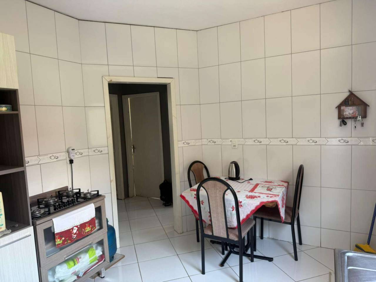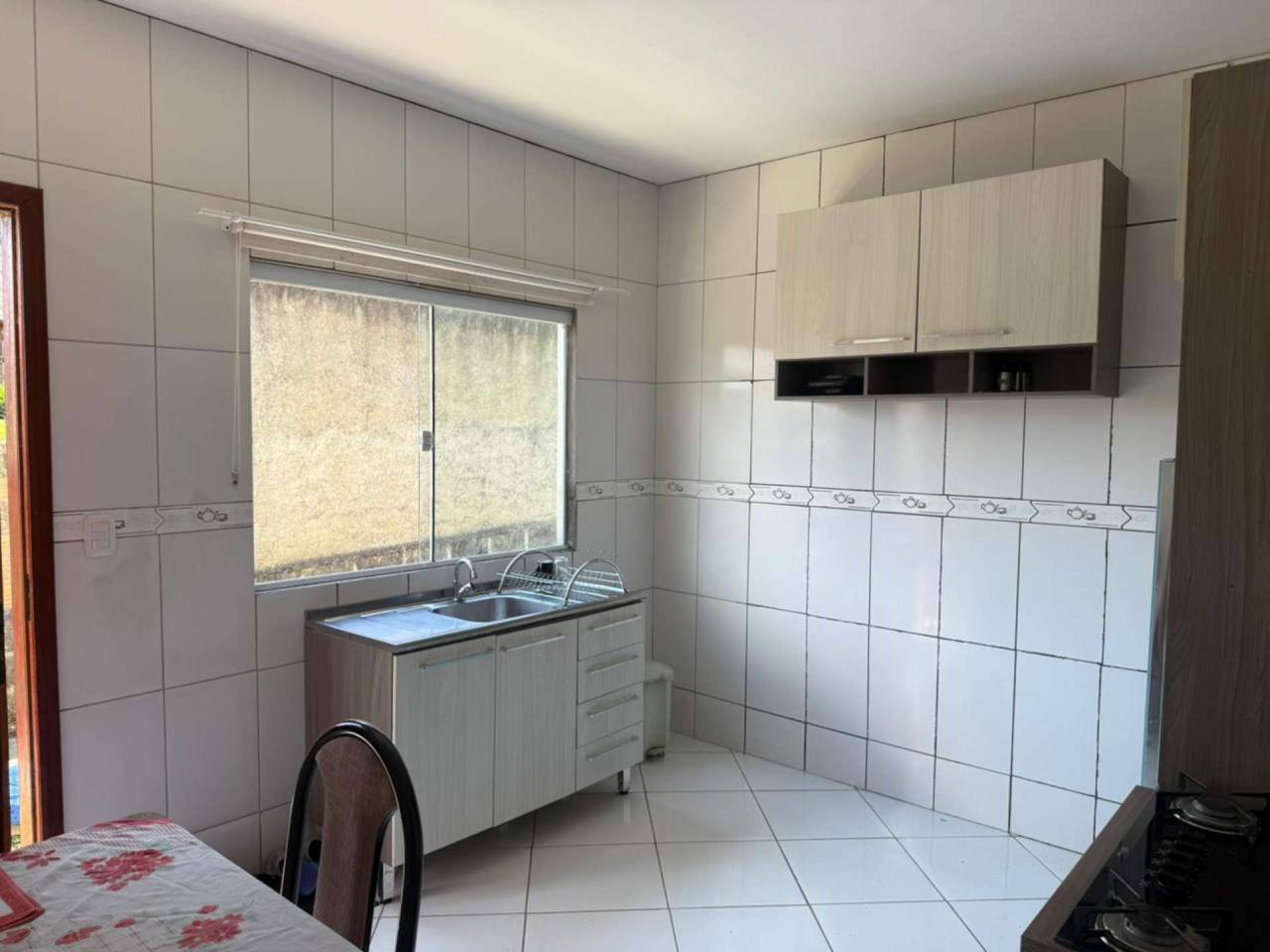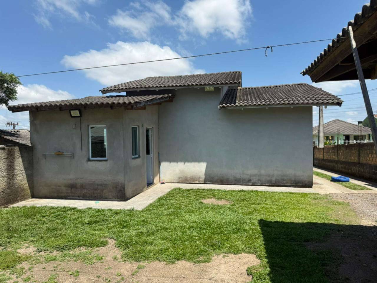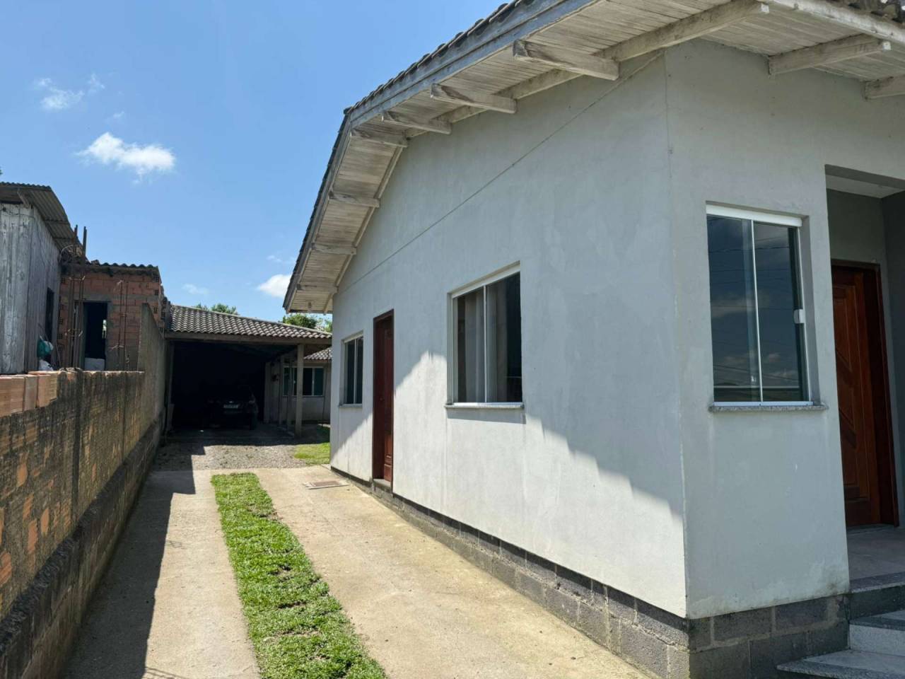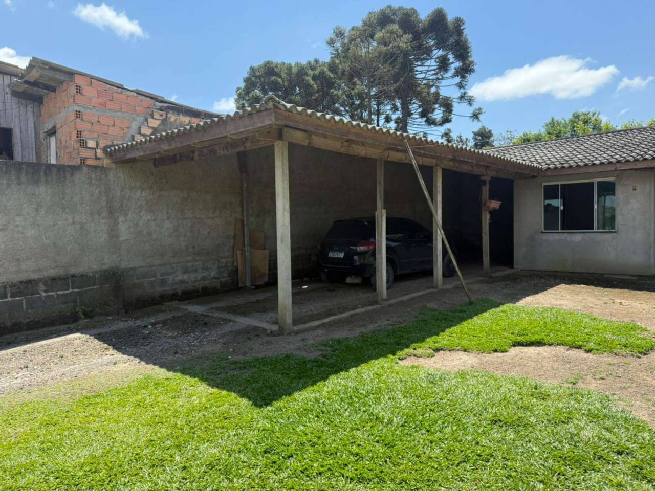 Localizada no Bairro Tributo Casa de Alvenaria com 2 dormitórios, sala de estar, cozinha, bwc, área de serviço. Acabamento com laje (forro) e piso cerâmico. Cobertura com telhas de concreto. Edícula fundos inacabada, contendo garagem coberta para 2 carros. Pátio gramado nos fundos, calçadas ao redor. Portão muro frontal com vidros Blindex e outros.