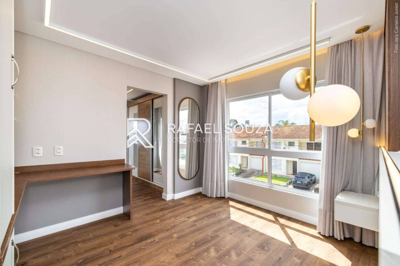 O ar-condicionado do quarto suíte é novo, moderno e também compatível com automação residencial, oferecendo mais conforto, praticidade e tecnologia no dia a dia.