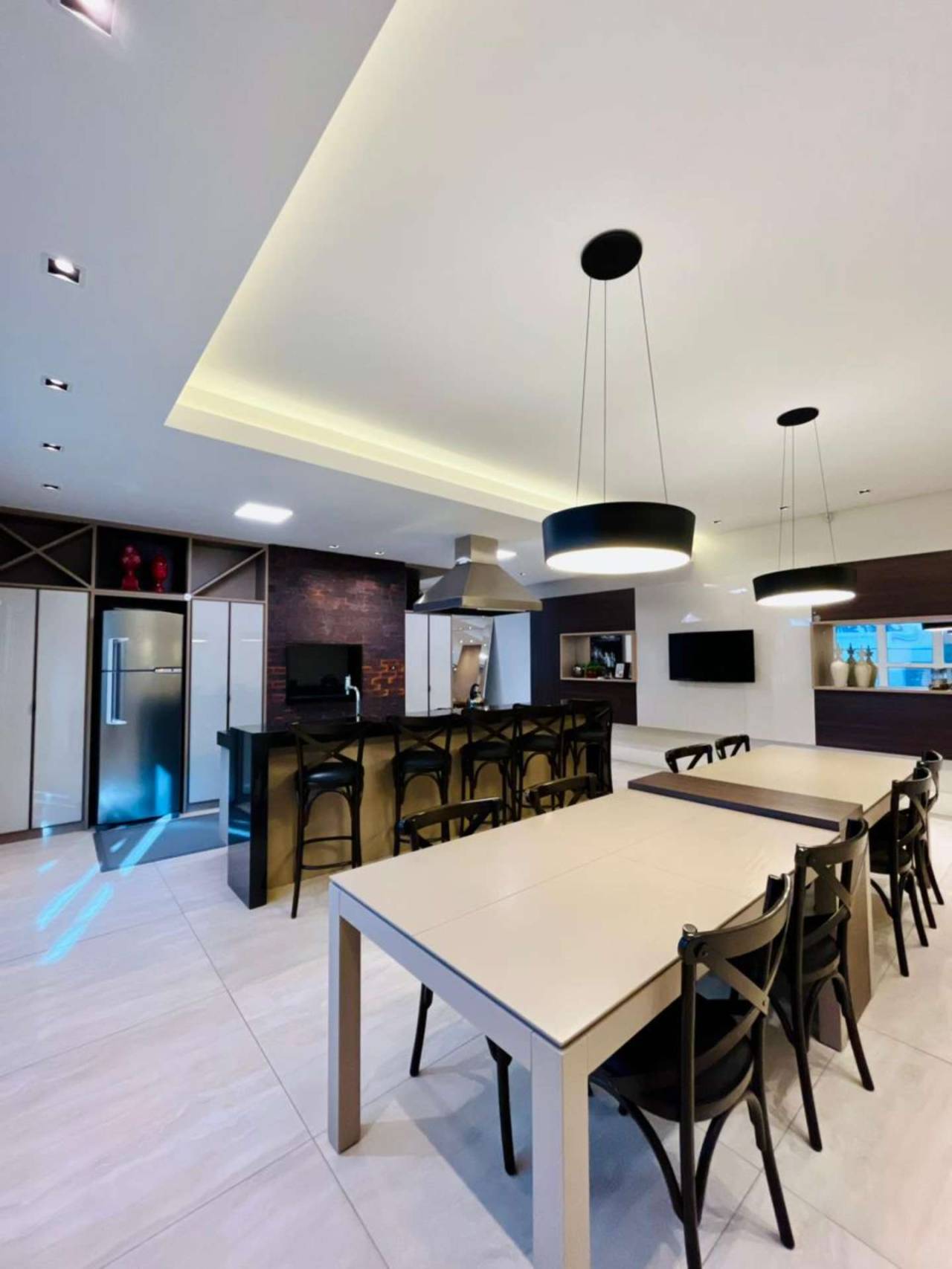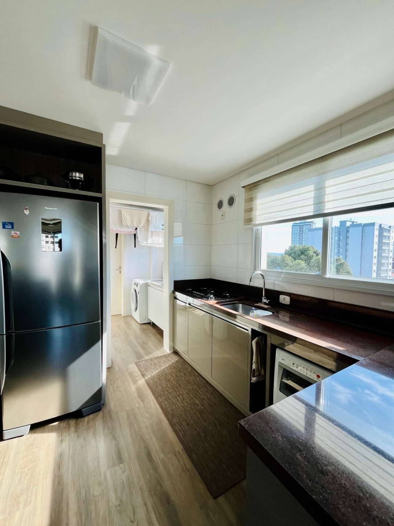Ambientes integrados: sala de estar, jantar e cozinha