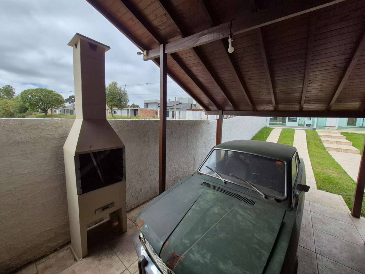 Garagem com churrasqueira