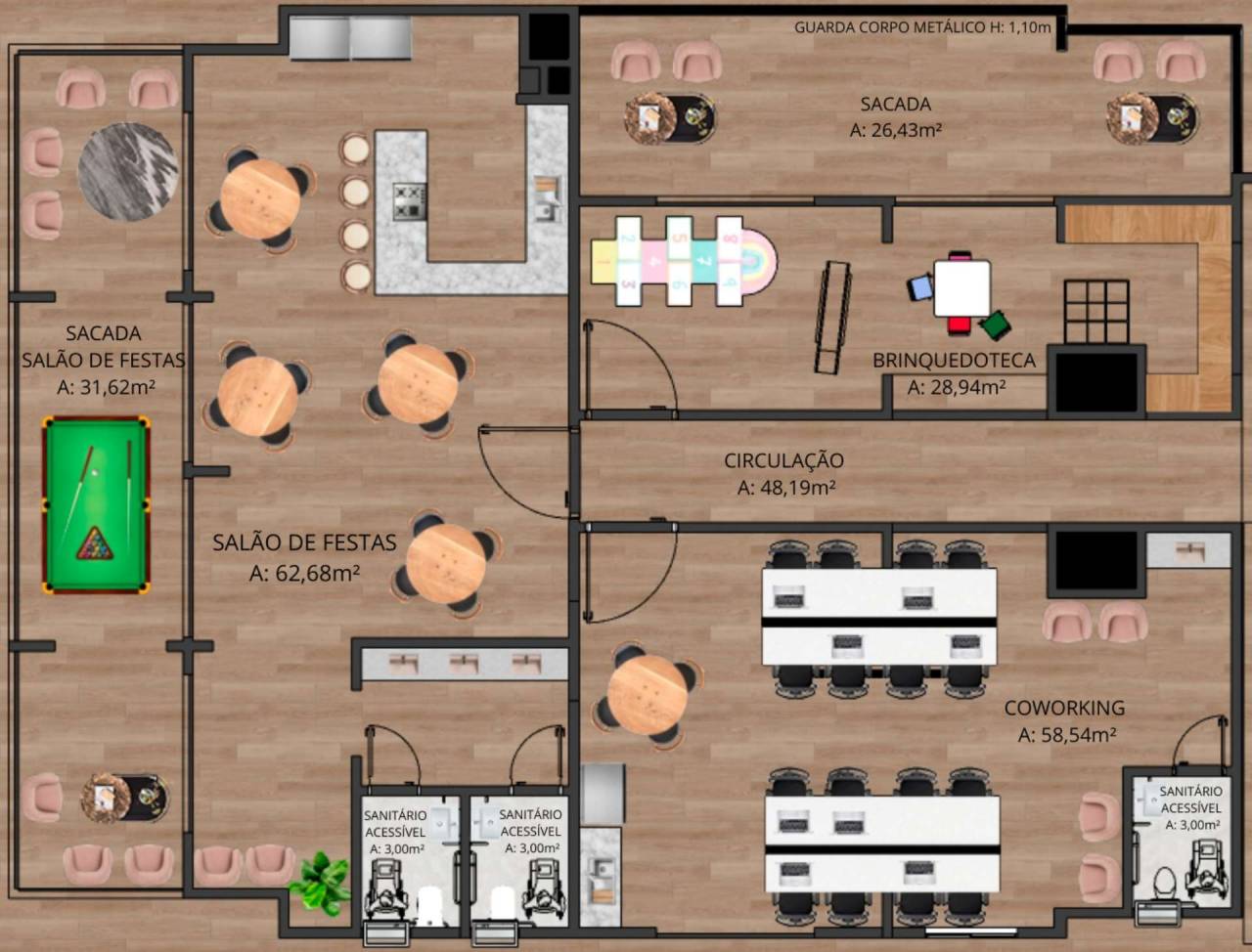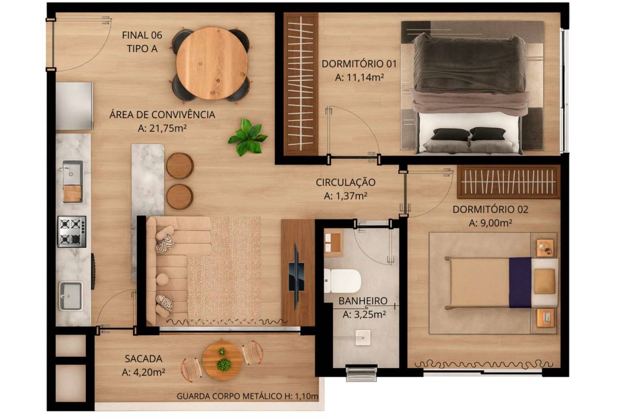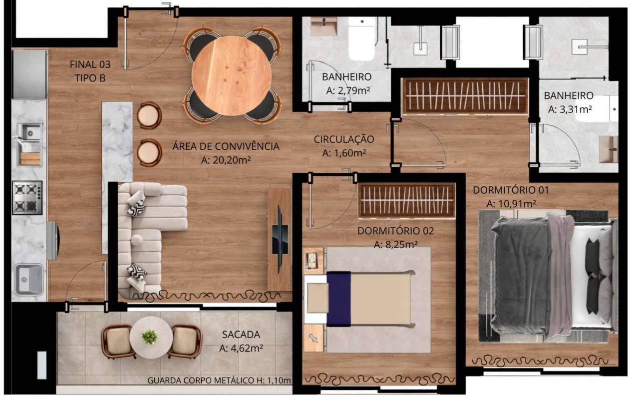 * Metragens privativas:
