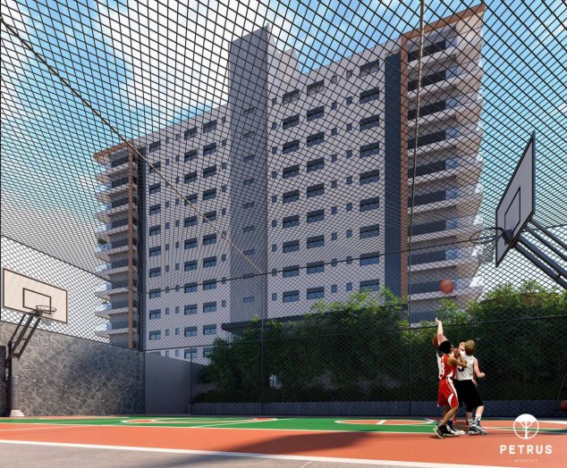 O diferencial do Petrus Residence é sua área de lazer, com mais de 1.700m² totalmente mobiliados e decorados. Você terá à disposição um hall de entrada com pé-direito duplo, piscinas adulto e infantil aquecidas, quiosque com parrilla, quadra poliesportiva e dois salões de festas.