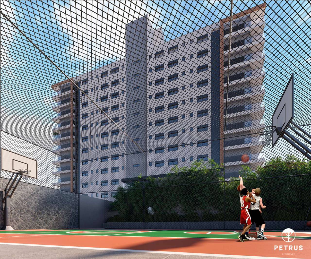 O diferencial do Petrus Residence é sua área de lazer, com mais de 1.700m² totalmente mobiliados e decorados. Você terá à disposição um hall de entrada com pé-direito duplo, piscinas adulto e infantil aquecidas, quiosque com parrilla, quadra poliesportiva e dois salões de festas.