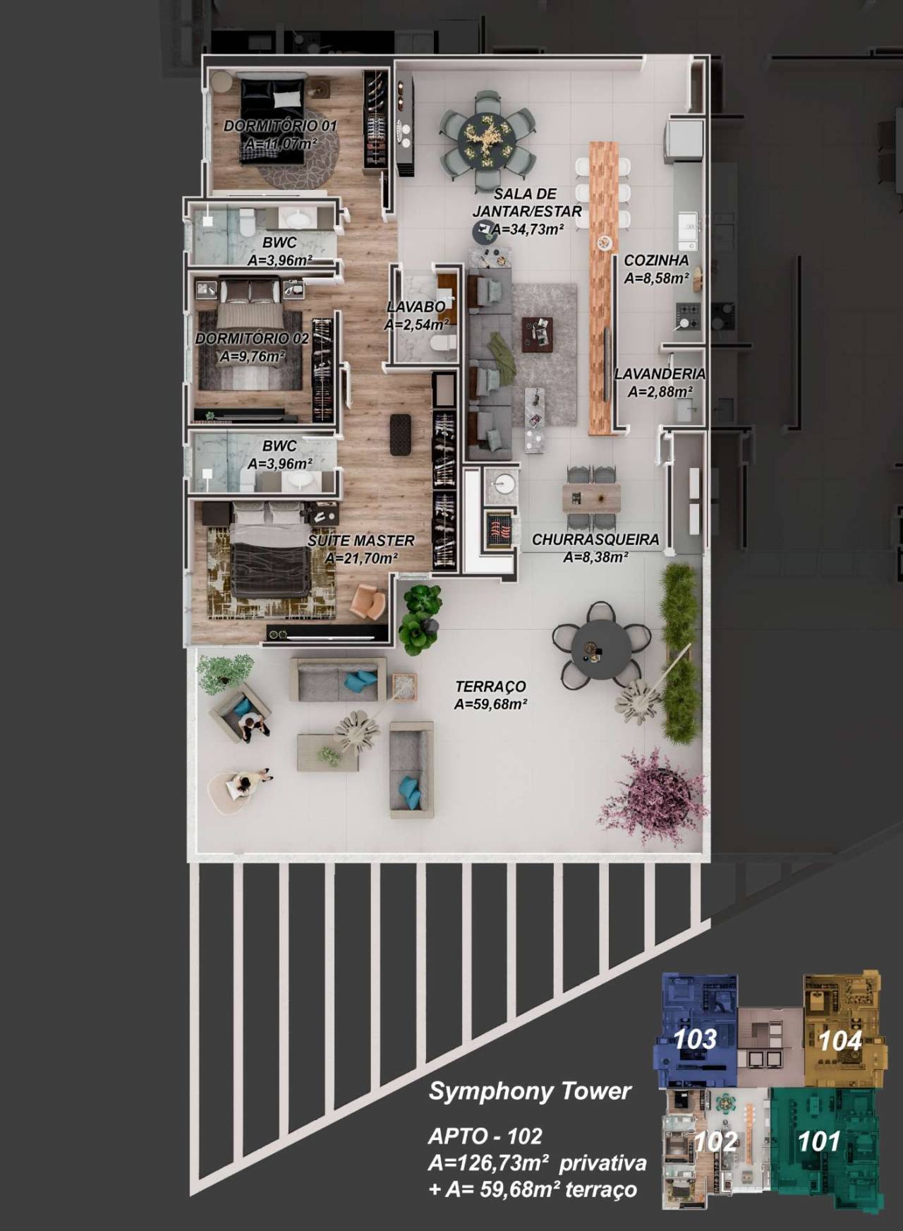 Oportunidade de viver no Symphony Tower, em uma unidade que redefine o conceito de morar bem. Este Apartamento Garden exclusivo combina a segurança de um edifício de alto padrão com a liberdade de uma casa, oferecendo 126 m² de área privativa interna complementados por um espetacular espaço garden de 60 m². Imagine desfrutar de um refúgio ao ar livre privativo, perfeito para momentos em família, lazer com seus pets ou para criar o seu próprio jardim particular, tudo isso em plena Avenida Duque de Caxias.