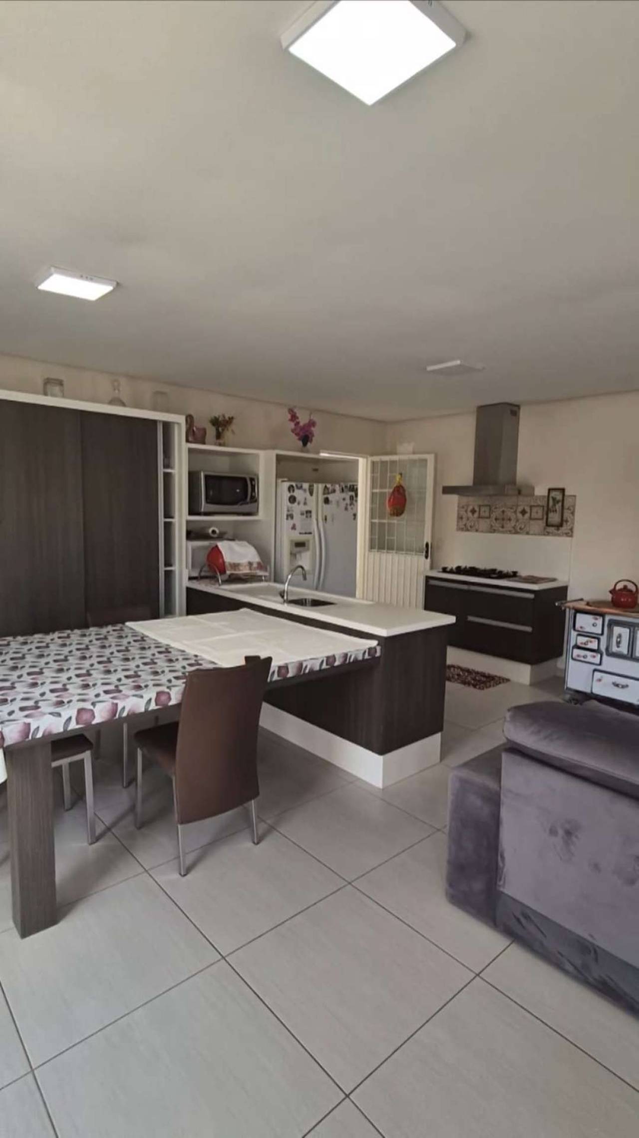 Casa Espaçosa. 1 suíte, 4 quartos, Sala estar/ Jantar com Cozinha conjugada espaço pra fogão a lenha ou lareira, sacadas. Parte inferior: Garagens, salão festas, depósito ou escritório, área serviço. Pátio com horta. ótima de sol. bairro que só valiriza.