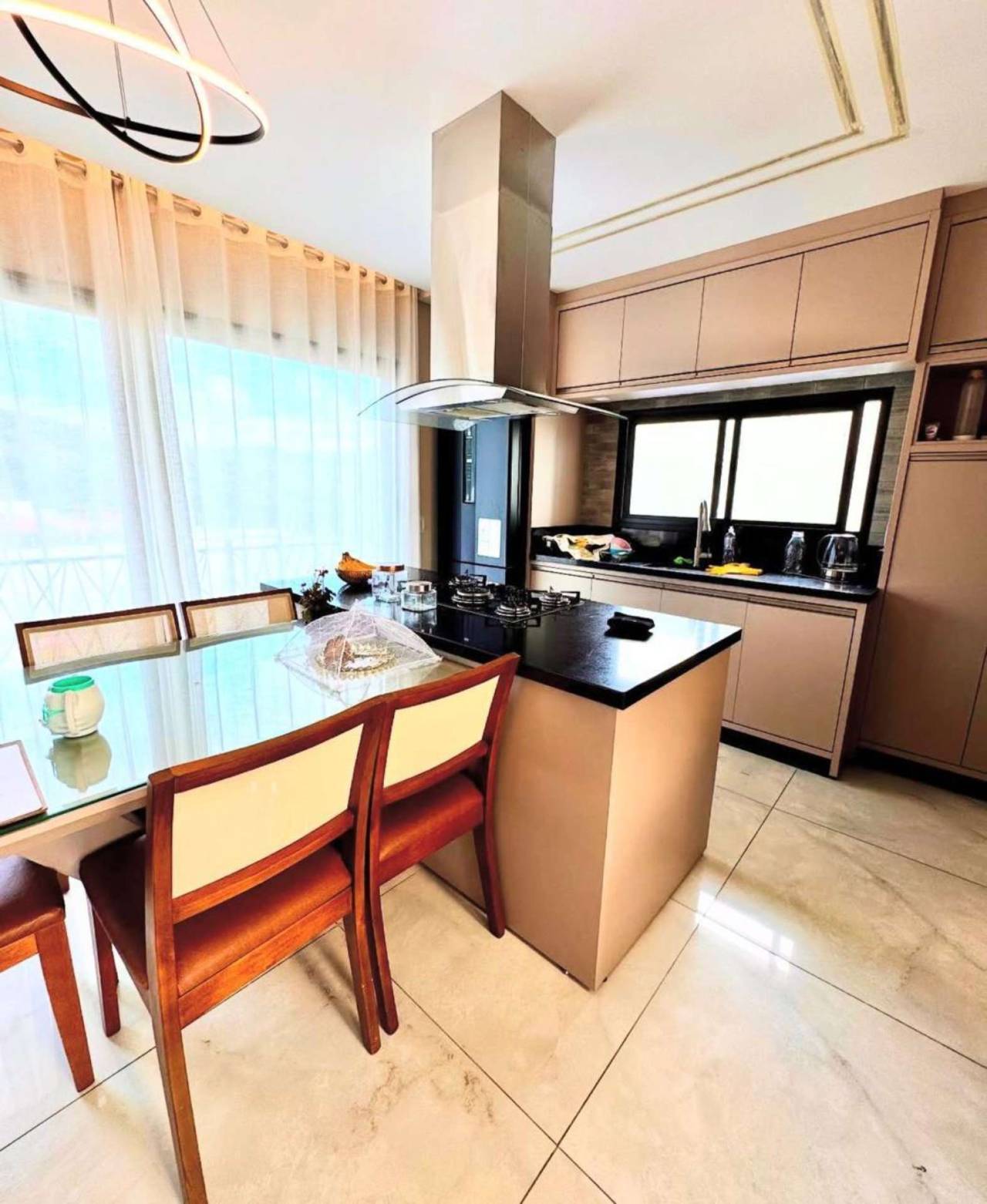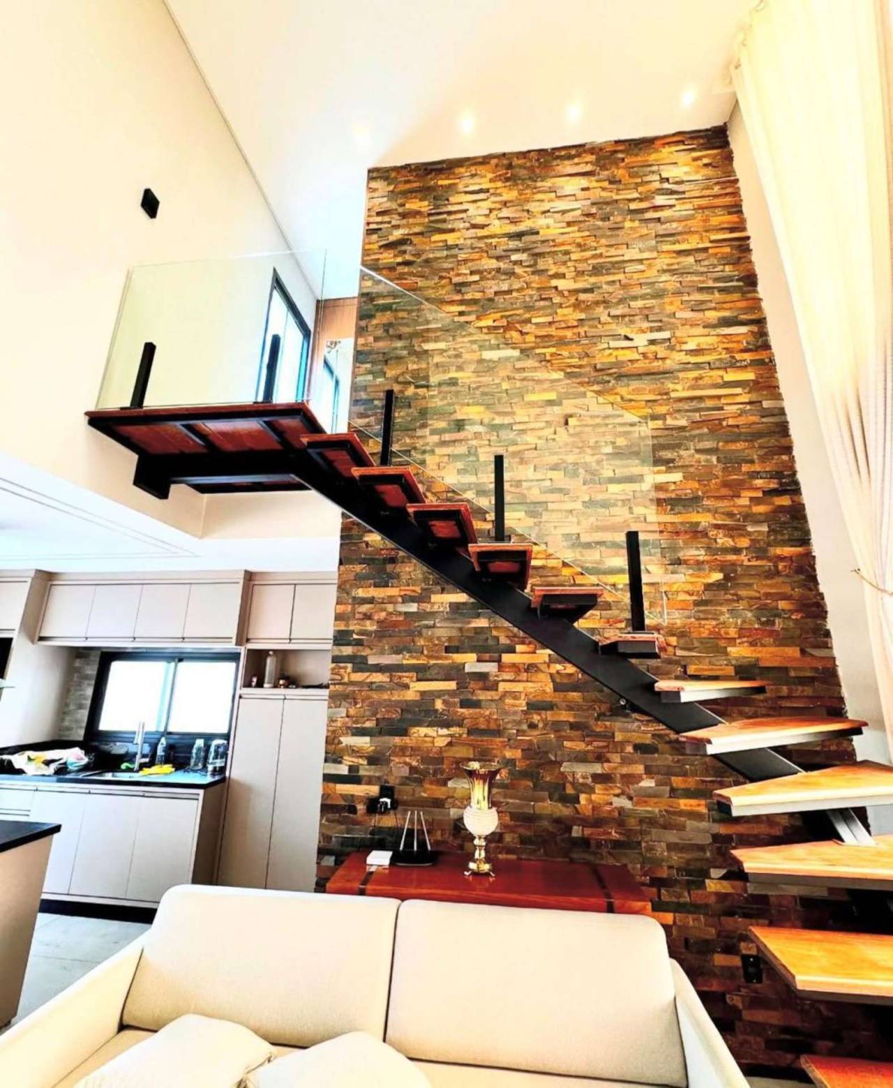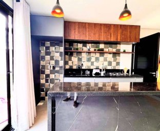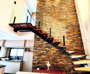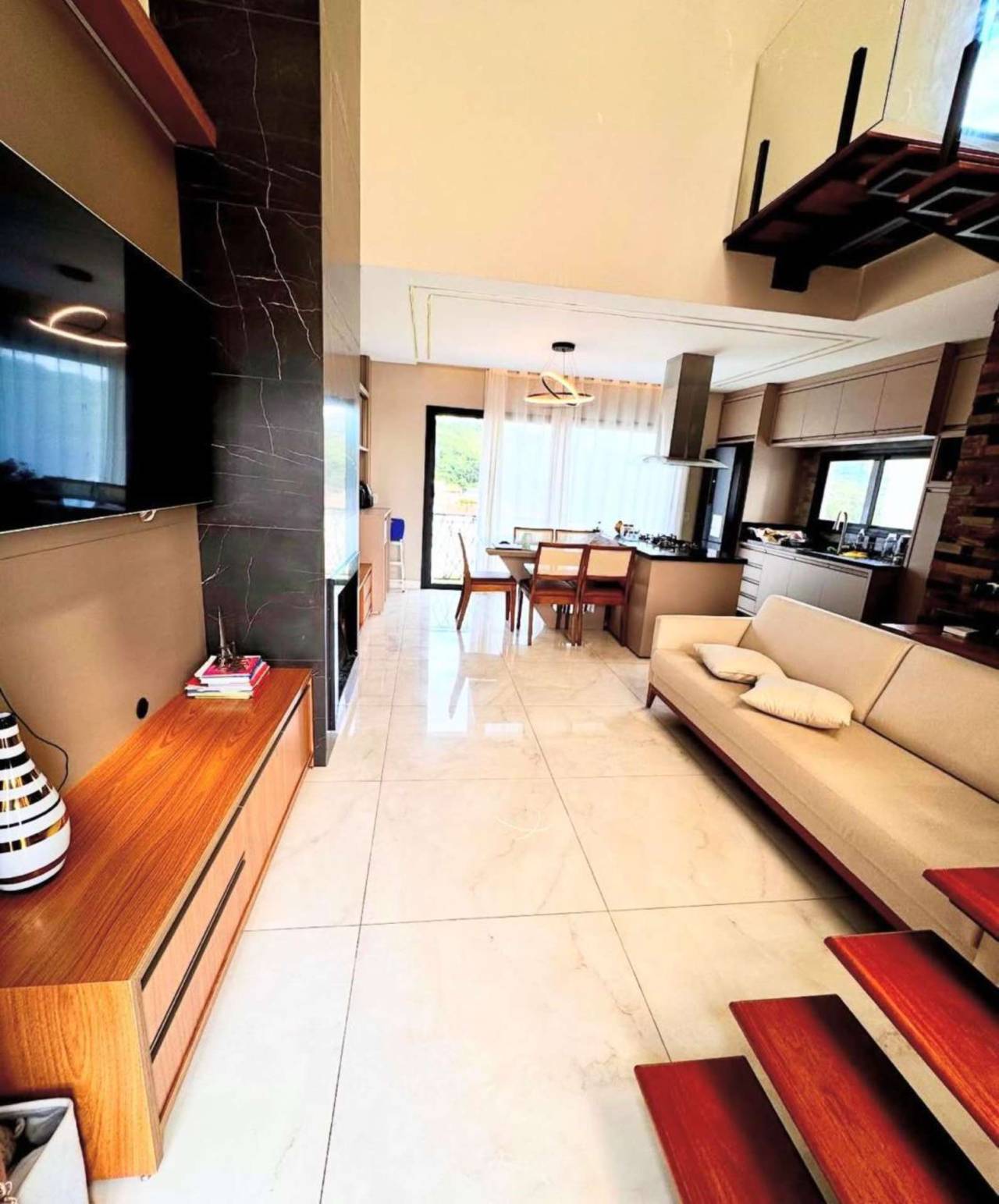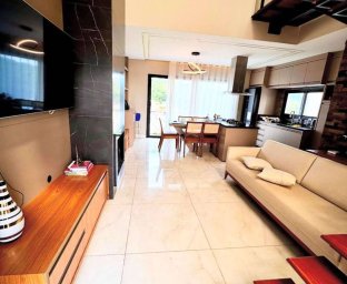 01 suíte 01 dormitório 01 banheiro social Cozinha com móveis sob medida Sala com lareira Pé direito alto