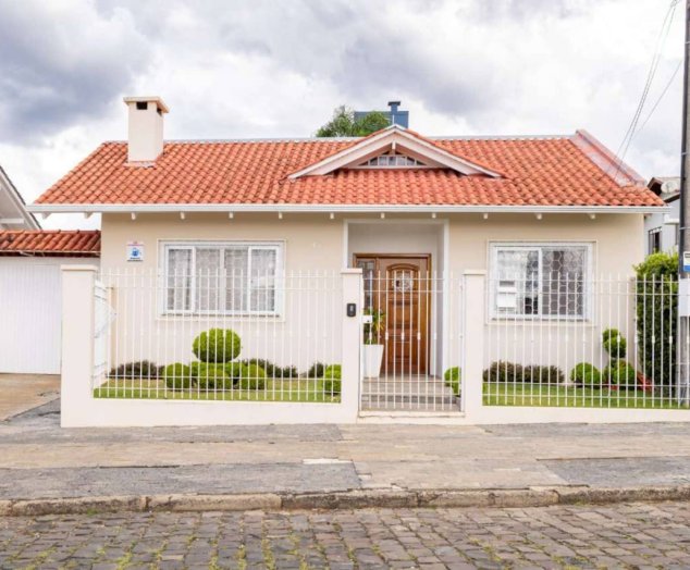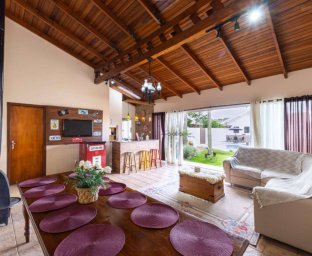 A casa conta com: 1 suíte + 2 dormitórios Escritório Sala de estar com lareira Sala de jantar Banheiro social + lavabo Cozinha e área de serviço Móveis planejados