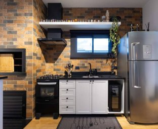 - Área Gourmet: A churrasqueira é o ponto central, unindo o rústico ao funcional.