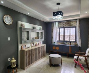 Casa de Alvenaria com 04 dormitórios (sendo 1 suíte com closet), sala de estar social com hall de entrada, sala de Tv e jantar, cozinha com moveis planejados, bwc, garagem para 03 carros. Acabamento com piso porcelanato, teto com rebaixe em gesso, janelas de alumínio com grades nos fundos, área de lazer coberta e edícula com 3 peças, churrasqueira, área de serviço.