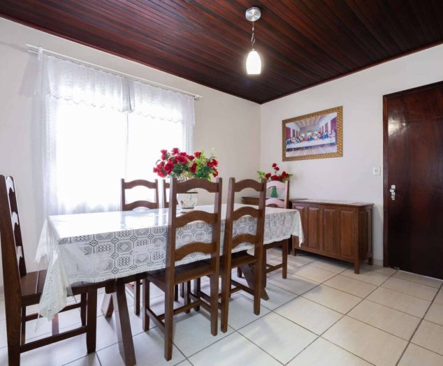 03 dormitórios Sala de estar e jantar Cozinha ampla com despensa Área de serviço 02 Banheiros Garagem para 02 carros Espaço coberto com churrasqueira a carvão