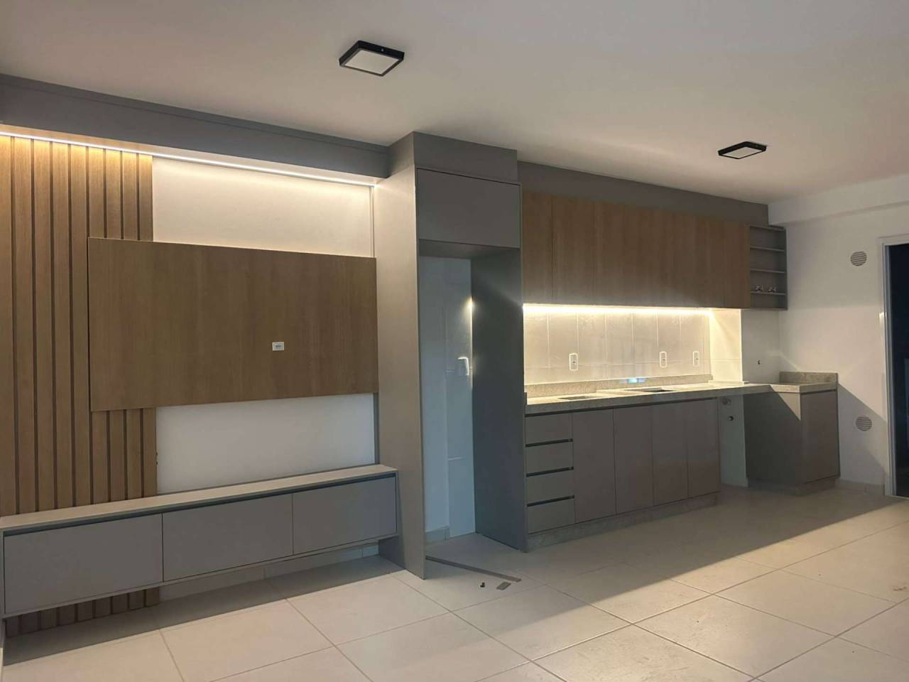 apartamento 2 quartos, sala cozinha com móveis emburidos novos, sacada com churrasqueira.