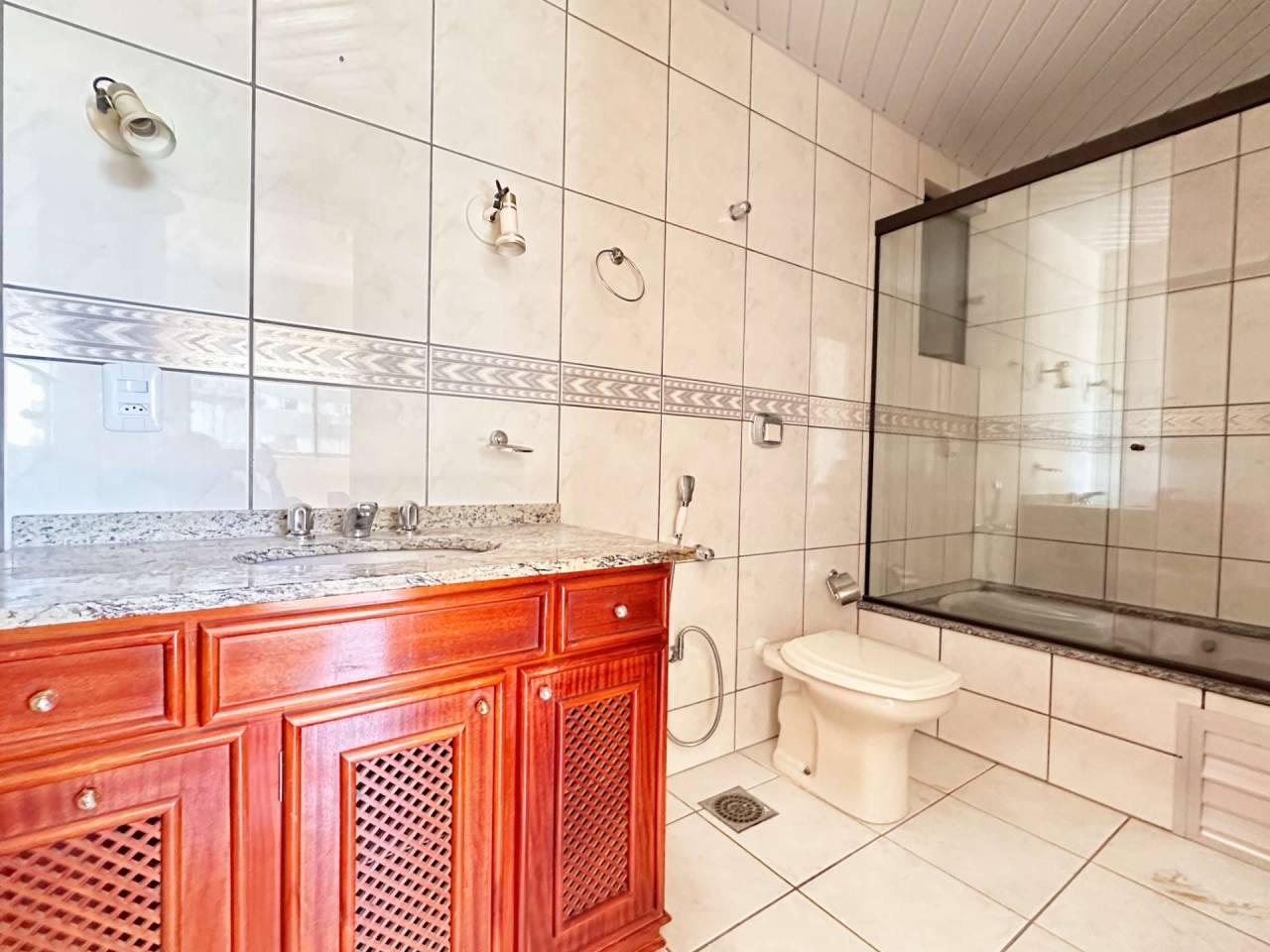 1 banheiro social com mobilia