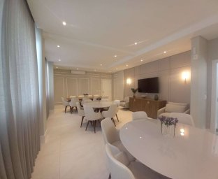 APATAMENTO ALTO PADRÃO COM 4- SUITES SENDO 1- MASTER E 2- COM CLOSET. SALAS ESTAR TV E JANTAR, LAVABO, COZINHA, DEPENDENCIA, CHURRASQUEIRA, CINEMA, BRINQUEDOTECA, SALÃO DE FESTAS MOBILIADO E DECORADO, ACADEMIA , QUADRA POLIESPORTIVA,PARQUINHO COM 3- VAGAS DE GARAGEM. OBS: APT CRU.