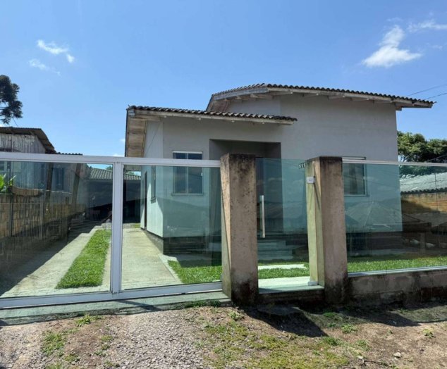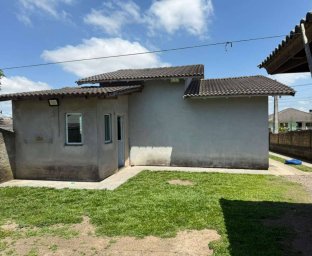 Localizada no Bairro Tributo Casa de Alvenaria com 2 dormitórios, sala de estar, cozinha, bwc, área de serviço. Acabamento com laje (forro) e piso cerâmico. Cobertura com telhas de concreto. Edícula fundos inacabada, contendo garagem coberta para 2 carros. Pátio gramado nos fundos, calçadas ao redor. Portão muro frontal com vidros Blindex e outros.