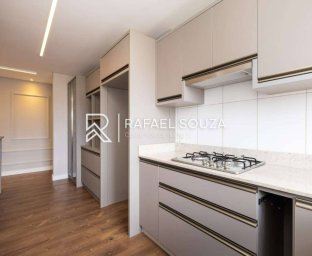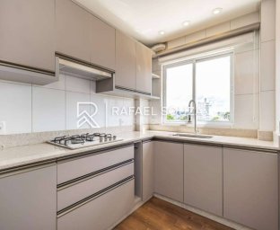 A cozinha é destaque: melhor aproveitamento do espaço, em tons clean, com mobiliário planejado, excelente aproveitamento de espaço e bancada funcional.