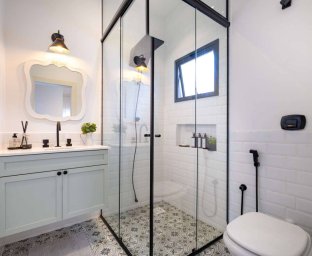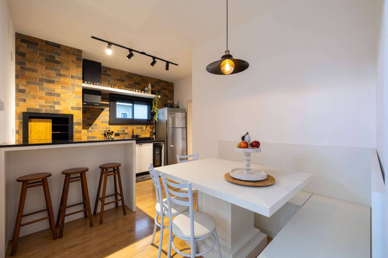 - Área Gourmet: A churrasqueira é o ponto central, unindo o rústico ao funcional.
